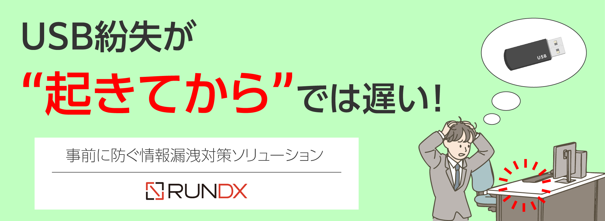 USBは「小型・安価・高速・大容量」というメリットがある反面、紛失しやすく、情報漏洩につながりやすい媒体でもあります。暗号化USBのみを使用することで対策をしている企業もありますが、不正な持ち出しや紛失からの情報漏洩対策としては十分ではないケースも少なくありません。